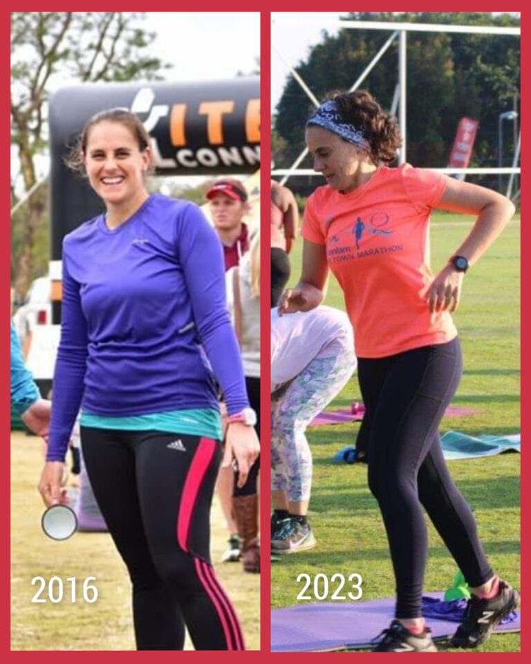 I have always been quite sporty & active. I’ve also always struggled with my weight & body image. I joined Michelle’s Boot Camp in 2016 having just moved back to Jhb. I had been living in Cape Town for the past 6 years where I did all sorts of crazy endurance sport including a full ironman event. However, even with all of that training & the outdoor lifestyle, my weight still went up & down like a yo-yo. Slowly over the last 7 years I have changed my relationship with food & exercise. I’ve gone back to Cape Town & then moved back to Jhb again & had two babies in between & somehow through consistency & some hard work, at times I weigh less than I ever have & my whole body shape has now changed.